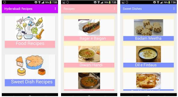 Hyderabadi recipes , it is a recipes app that gives you recipes with nice